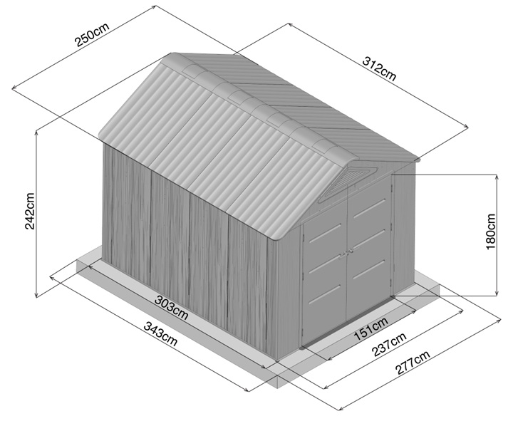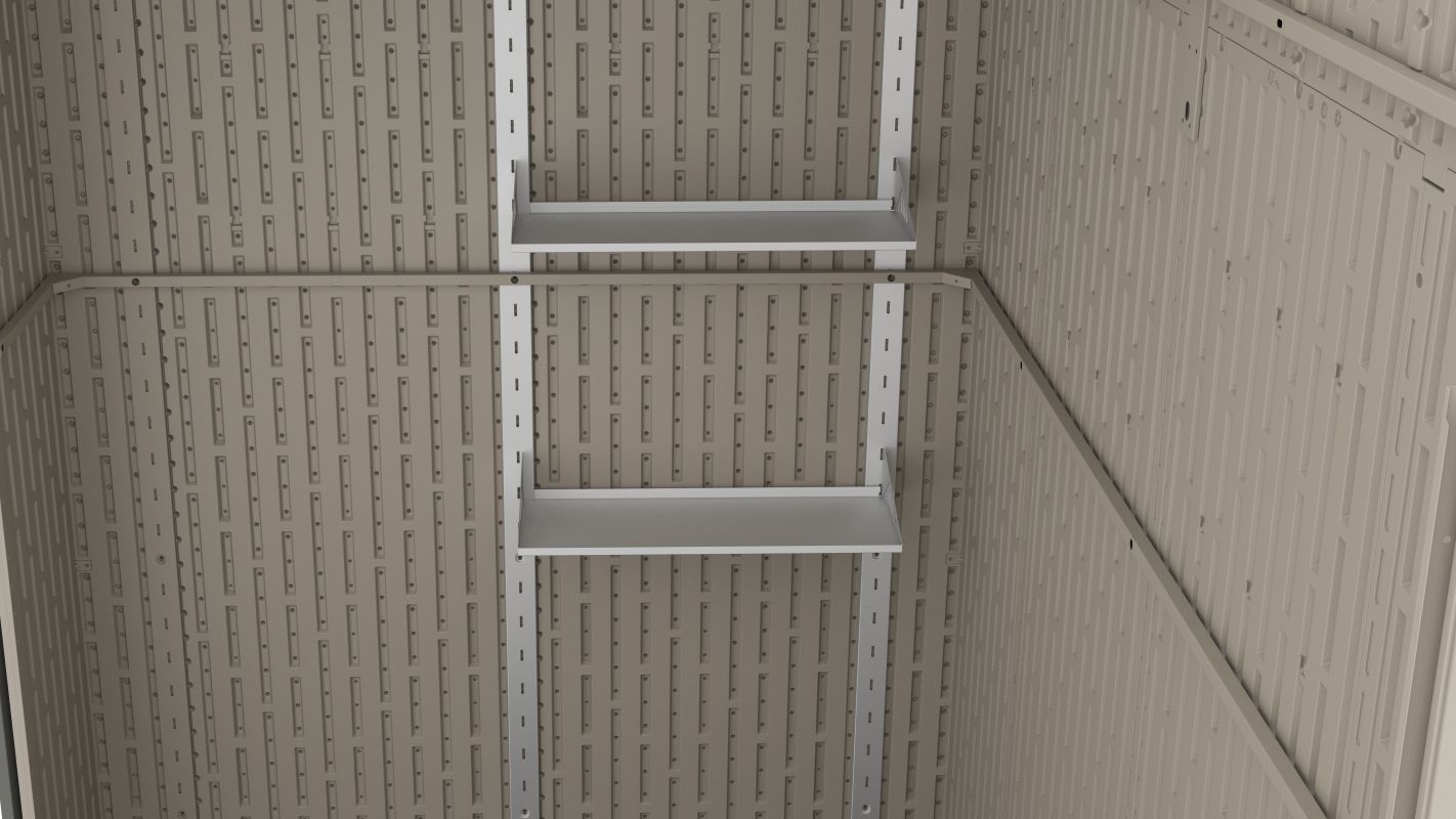 Moderní sedlová (apex) střecha přispívá k rychlému odvodu dešťové vody a zároveň zvyšuje nosnost celé konstrukce. V základní výbavě nechybí dvě praktické police a pět plastových háčků, díky nimž budete mít veškeré nářadí vždy přehledně uspořádané.