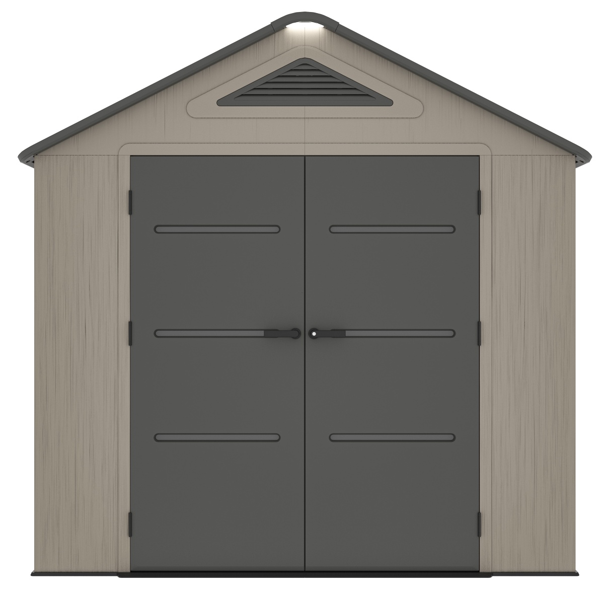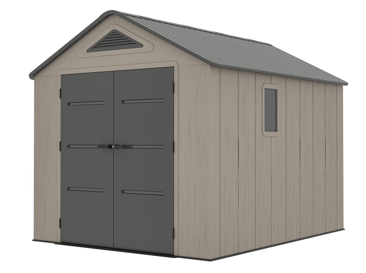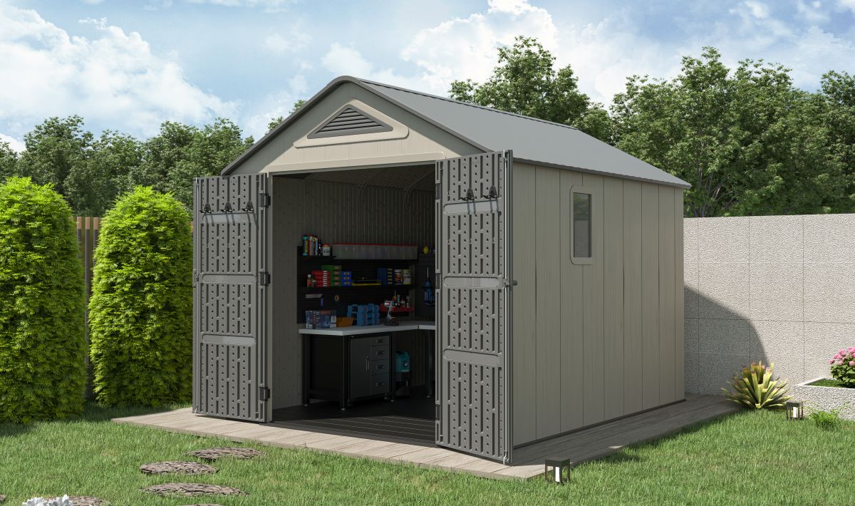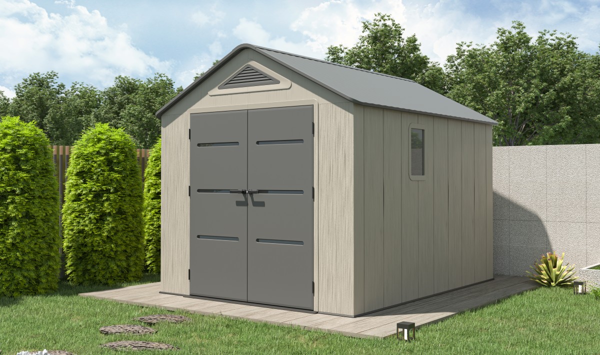 Součástí domku je také pevná plastová podlaha, která chrání před vlhkostí, blátem a umožňuje bezpečné uložení i těžších předmětů. O optimální klima uvnitř se stará ventilační systém na dvou stranách, který zajišťuje účinnou cirkulaci vzduchu.