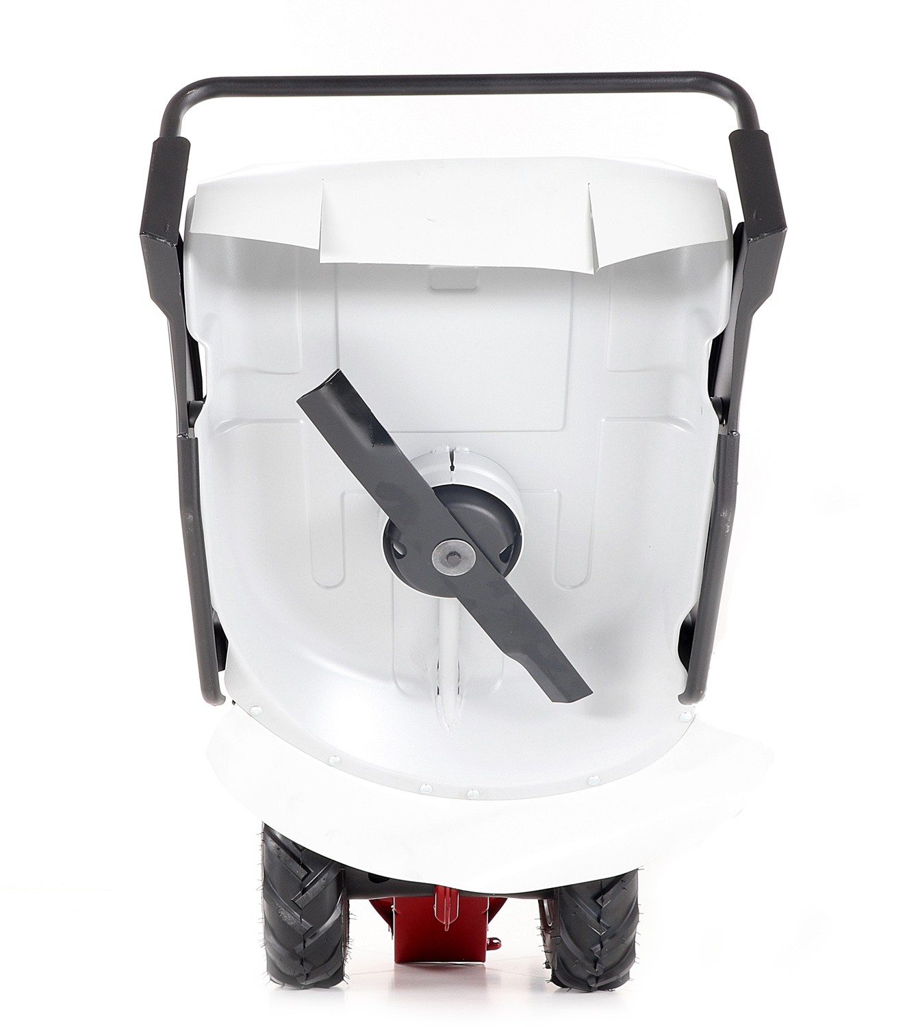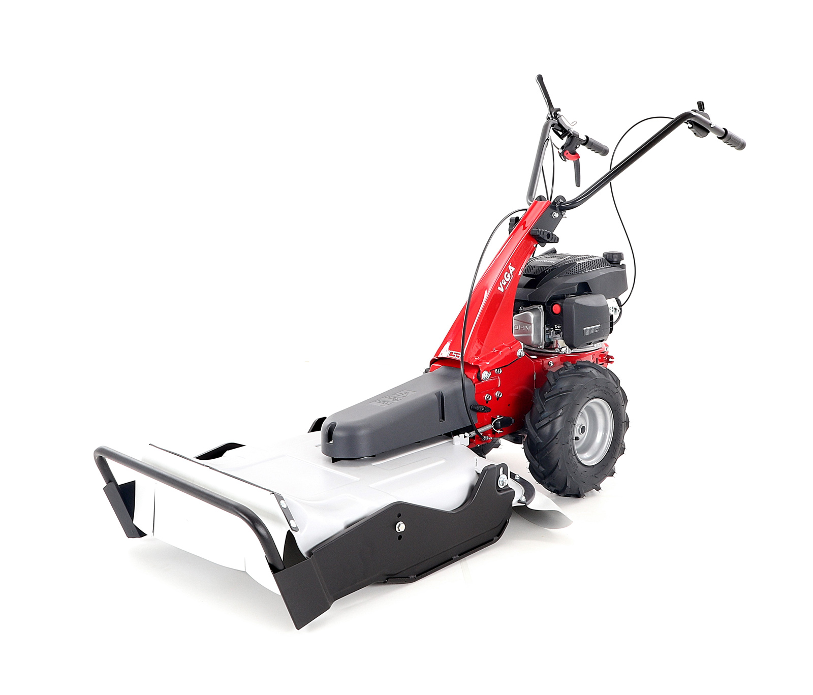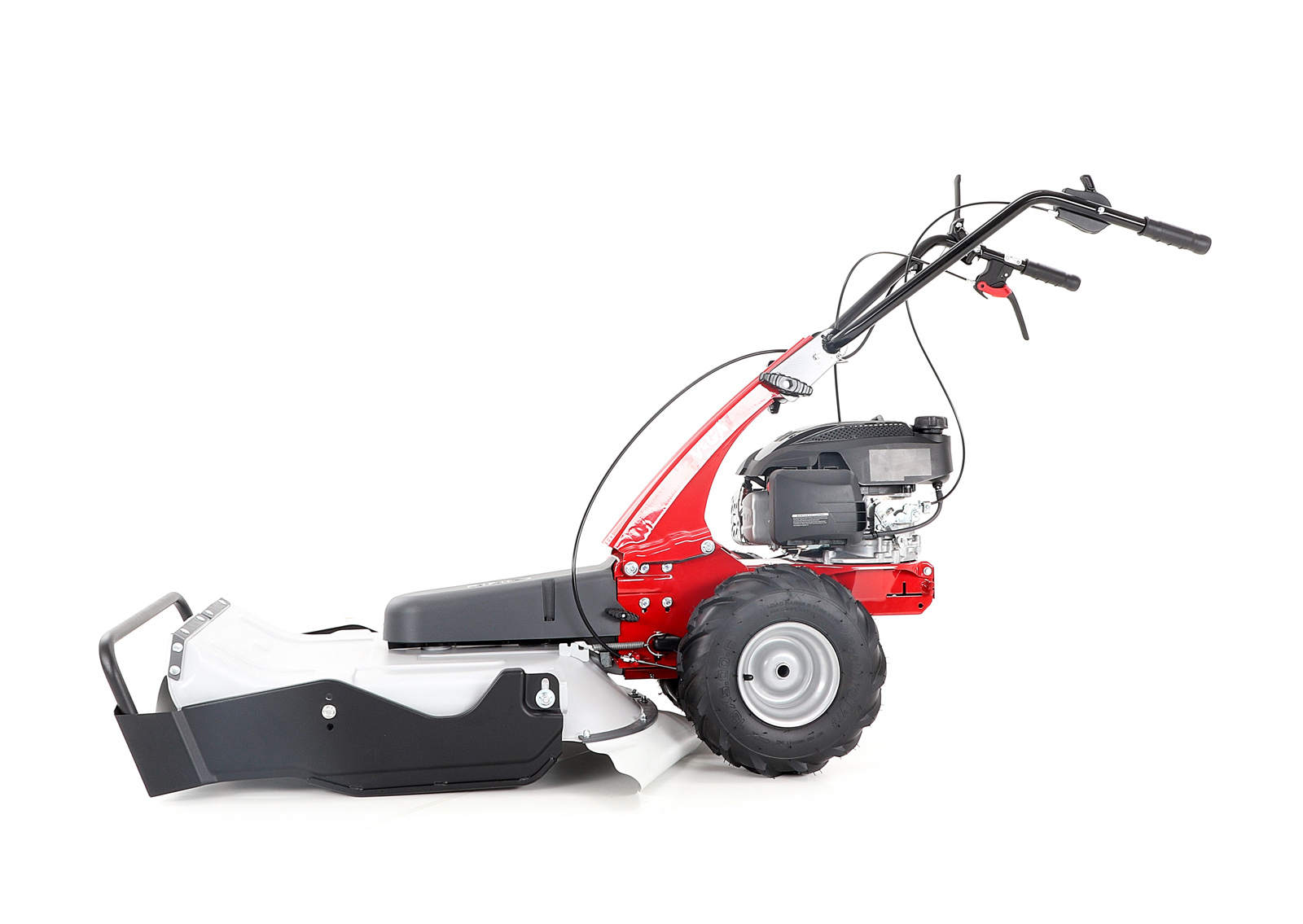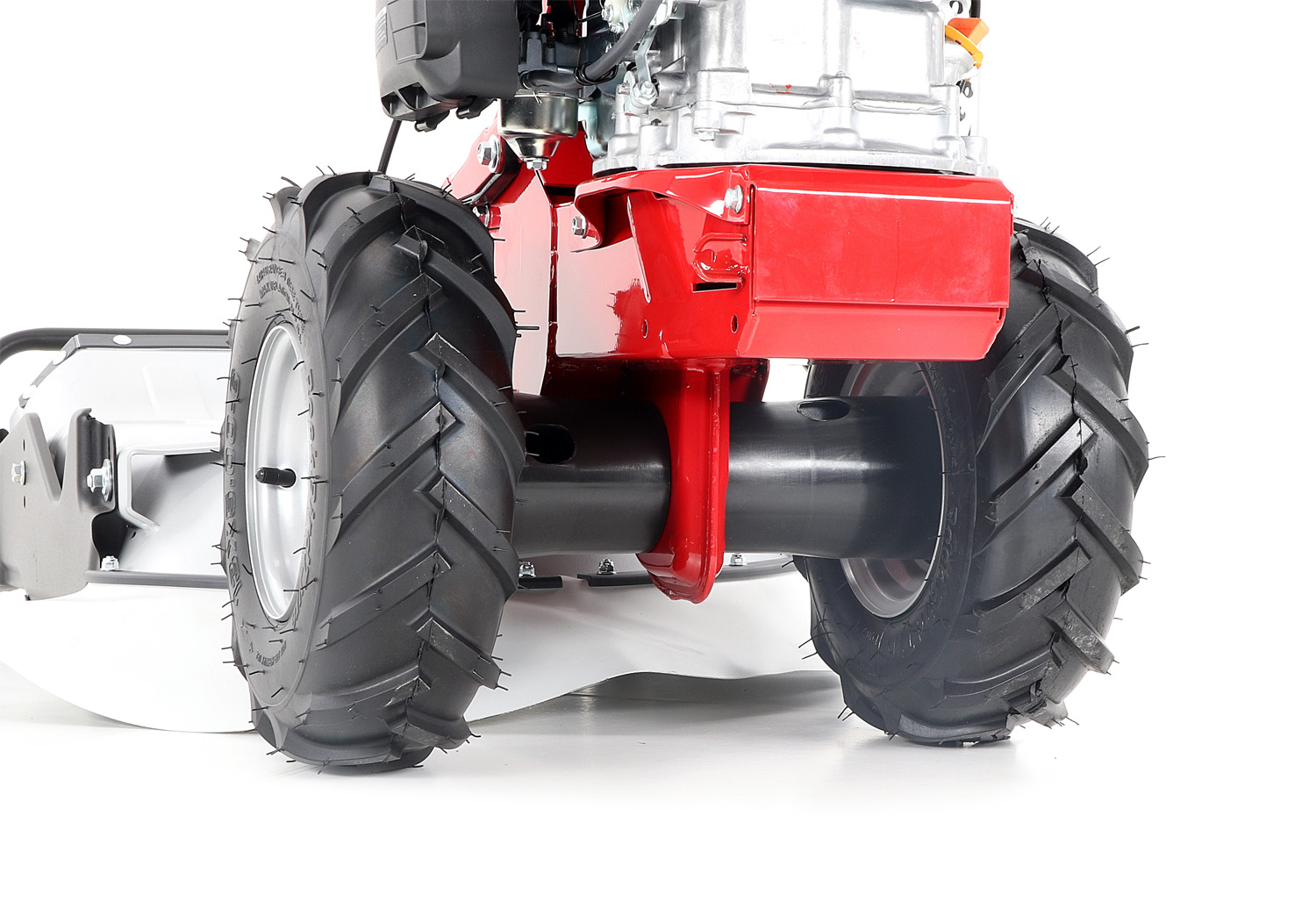 Díky tomu je manipulace se sekačkou pohodlná i v členitém nebo svažitém terénu. Jednostranný pojezdový systém poskytuje vysokou trakci a jistotu při práci ve vysokém porostu.